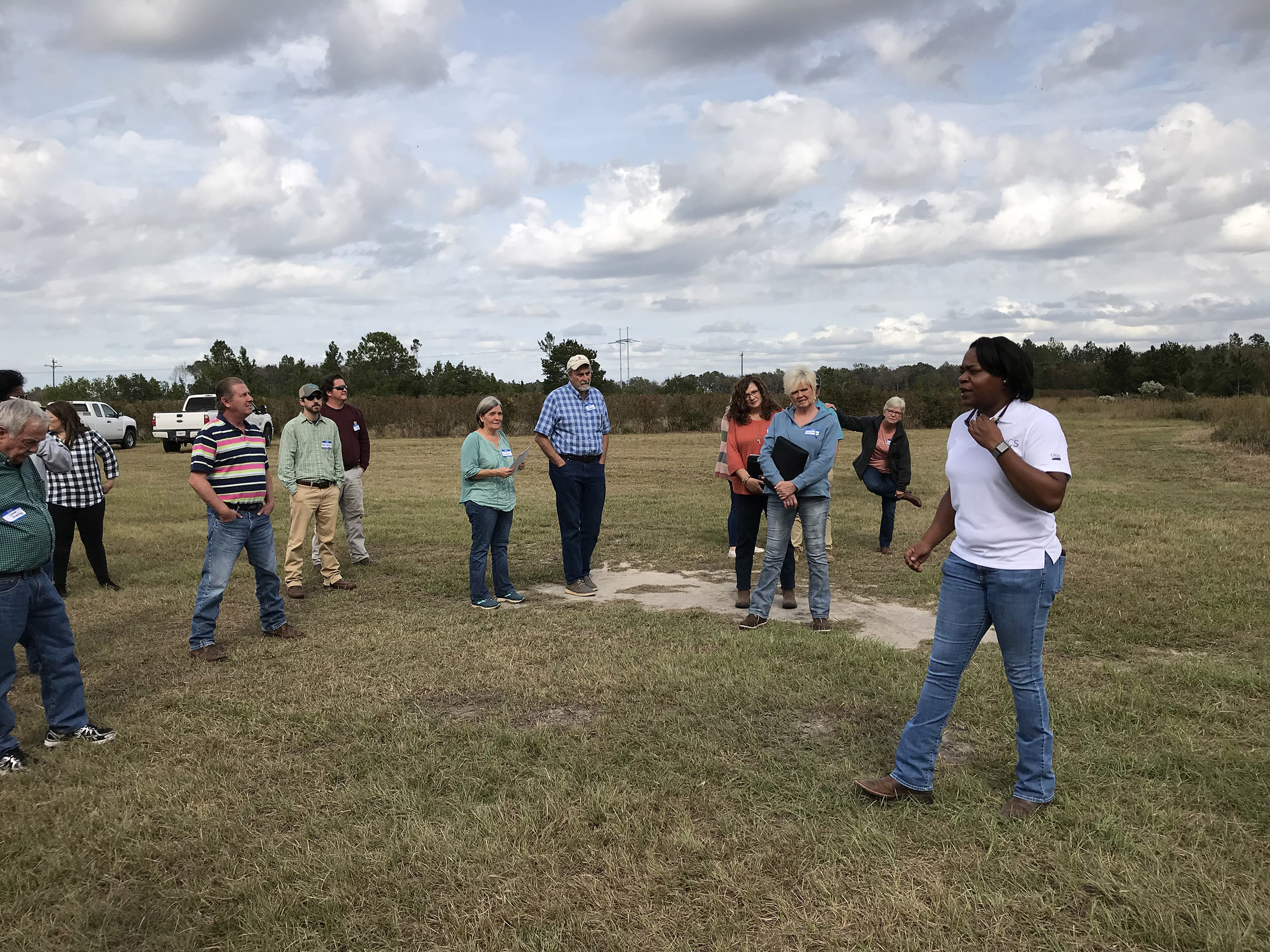 Aalia McClendon, a District Conservationist with the Georgia NRCS (a Xerces Society conservation partner), talks during a training day about pollinator habitat enhancements done with Farm Bill support. (Photo: Xerces Society / Nancy Lee Adamson.)