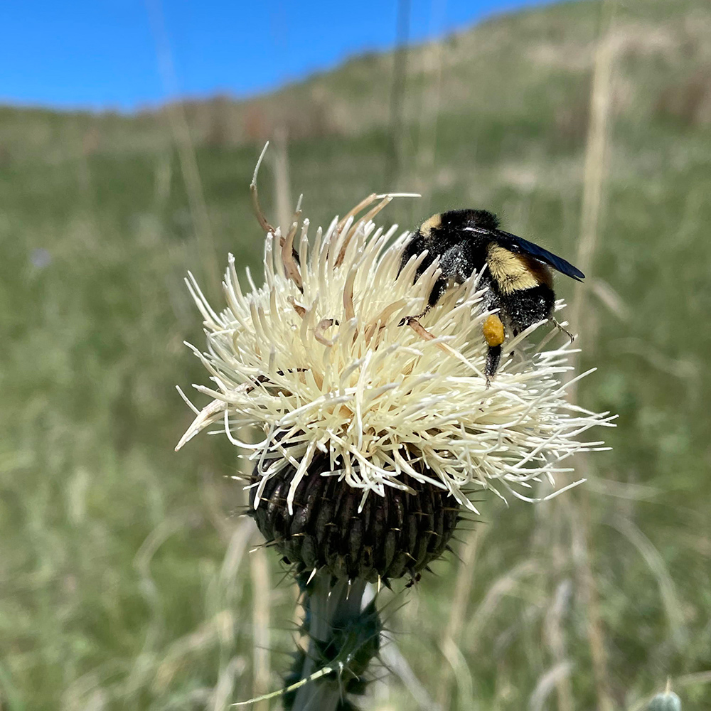 Rangelands are important for native pollinators and beneficial insects because they provide vast, connected habitat. The diversity of wildflowers and flowering shrubs found on rangelands provide valuable food (pollen and nectar) resources for adult pollinators and beneficial insects throughout the growing season. Rangelands also offer nesting habitat for thousands of species of bees and provide host plants needed by hundreds of species of butterflies and moths. Woody debris and leaf litter that occurs naturally on rangelands provides excellent overwintering shelter and habitat for native pollinators and other beneficial insects.