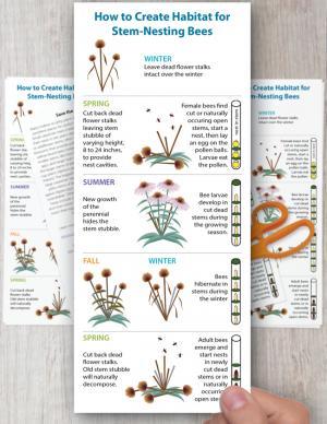 Help us save the stems for native bees—share this brochure with friends, family, and neighbors. This 1/3-page brochure explains the nesting cycle for solitary stem-nesting bees and how to protect them (and their nests) year-round (view a screen-friendly version here).