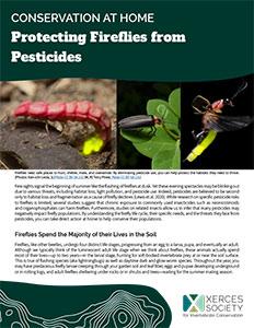 Pesticides are believed to be a major cause of firefly declines, second only to habitat loss and fragmentation. While research on specific pesticide risks to fireflies is limited, several studies suggest that commonly used insecticides can harm fireflies, and studies on related insects suggest that many pesticides may negatively impact firefly populations. This fact sheet provides information on firefly life cycles, the needs of these beetles, and the threats they face from pesticides, so that you can take direct action at home to help conserve their populations.