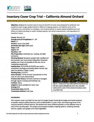 This insectary cover crop field trial was part of a larger project involving the design and implementation of specific insectary habitat features, such as field borders or cover crops, and measuring some of the resource benefits of these features. Click the following links to read additional California habitat trial reports: