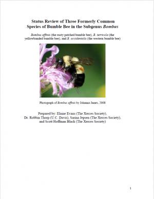 Assessing the status of Bombus affinis (the rusty patched bumble bee), B. terricola (the yellow-banded bumble bee), and B. occidentalis (the western bumble bee).