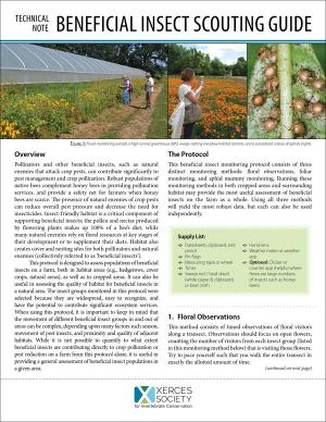 This protocol is designed to assess populations of beneficial insects on a farm, both in habitat areas (e.g., hedgerows, cover crops, natural areas), as well as in cropped areas. It can also be useful in assessing the quality of habitat for beneficial insects in a natural area.