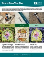 An instructional insert explaining how to hang a Xerces Society yard sign from the gift center using screws, zip ties, or nails.